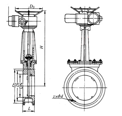 PN1.6MPa下的電動刀閘閥外形尺寸